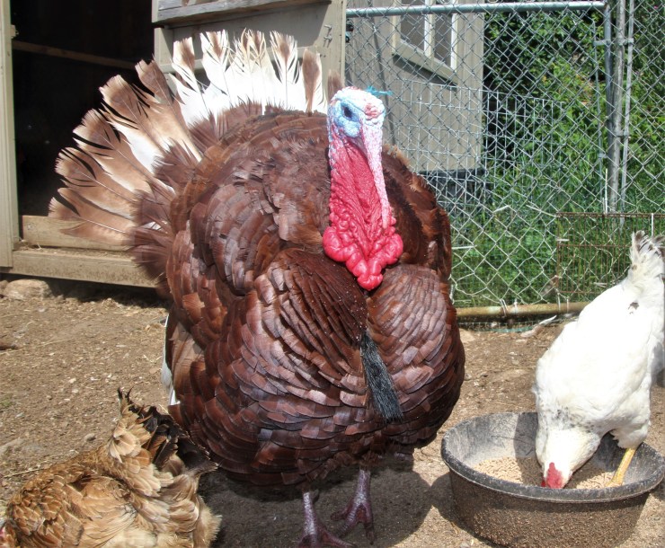 We have a couple turkeys on the farm who are very friendly and love the attention from the other animals. Visit our page for more photos of them!