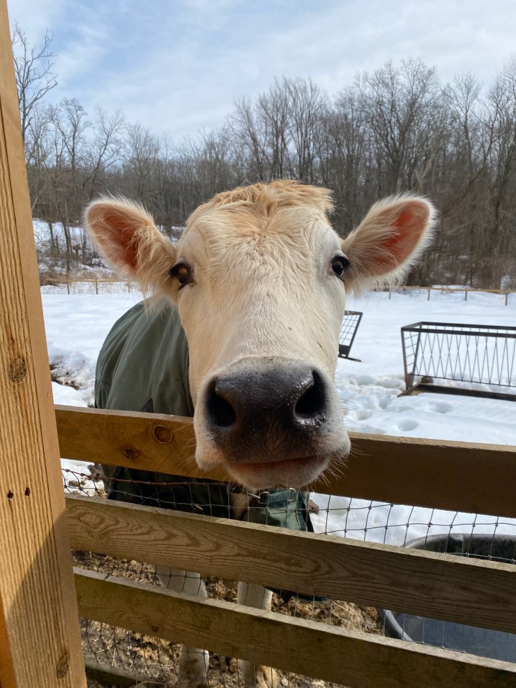 Our Oreo, just as sweet as the cookie! Surrendered to us after she was no longer wanted; living out her days eating, lounging and chewing her cud, just they way she should!