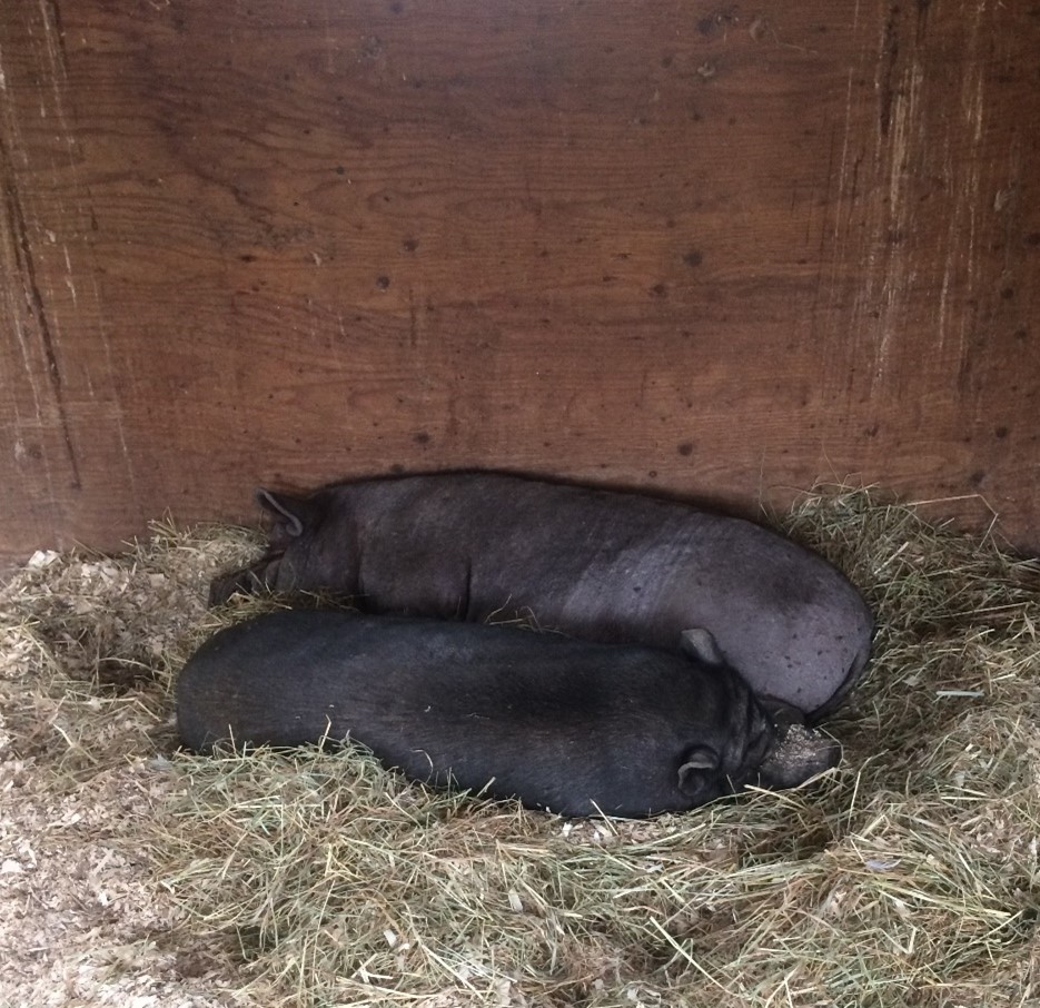 Franklin and Annabella are an all too familiar story when it comes to pot belly pigs, they got bigger than their owners expected and were not trained properly so they were surrendered to us. They are sweet as can be and love each other very much!